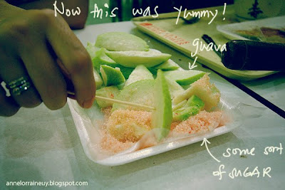 Next we tried the guava slices with some peach-colored sugar…